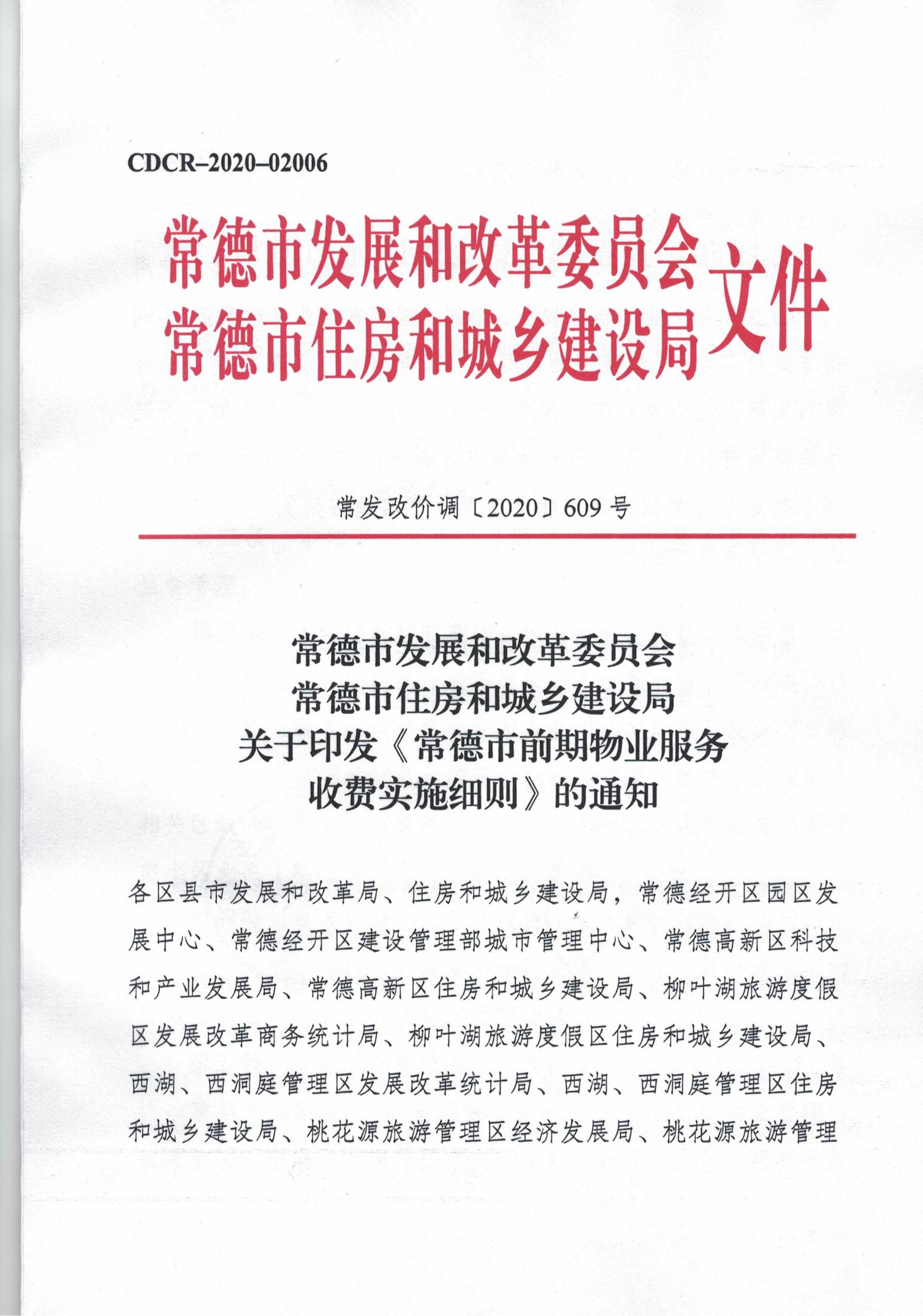 常德市發(fā)展和改革委員會 常德市住房和城鄉(xiāng)建設(shè)局 關(guān)于印發(fā)《常德市前期物業(yè)服務(wù) 收費(fèi)實(shí)施細(xì)則》的通知